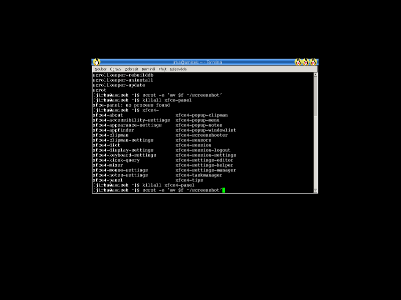 Na obrázcích vidíte moje XFCE, tedy XFCE s mým nastavením. Vy, když spustíte desktopové prostředí, tak se nastartuje v defaultní podobě - tedy s default nastavením. Při odhlášení nebo vypínání je běžné, že je nabídnuta volba uložit sezení, která zajistí, že příště se desktopové prostředí spustí s nastavením, které jste provedli. Tedy v podobě, v jaké jste jej opustili.